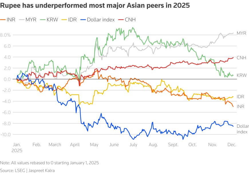 The rupee has fallen 5.3% year-to-date, putting it on track for its steepest annual decline since 2022, and making it the worst-performing Asian currency.